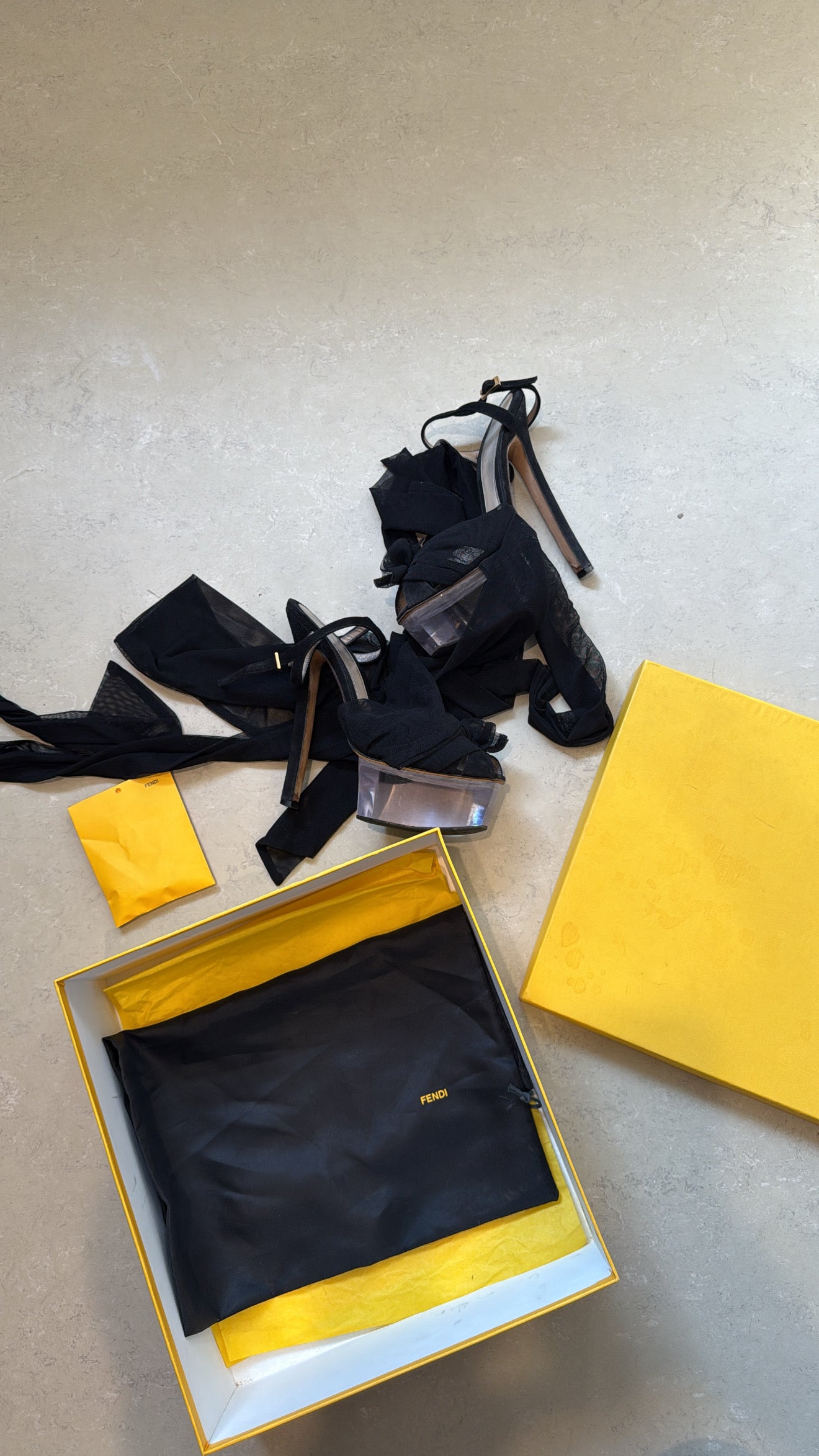 - comes with : box , dust bag , spare heel caps